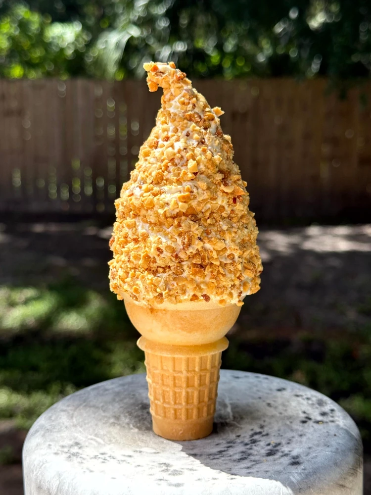 Treat yourself to creamy soft serve in fun flavors, dipped or topped with chocolate, nuts, or sprinkles for a sweet, whimsical delight!